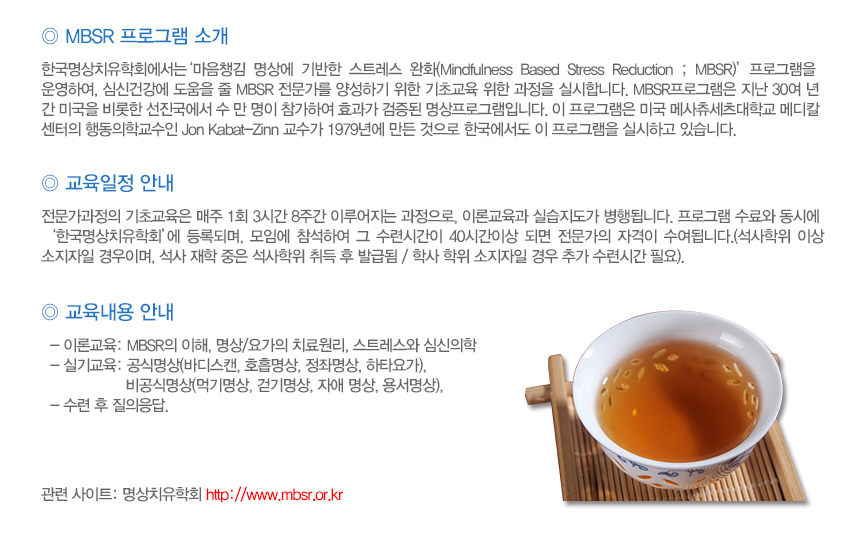 문학치료전문가 과정 / MBSR(마음챙김명상) 기초교육 / 상담전문가 양성 프로그램 / 상담전문가 연수 프로그램